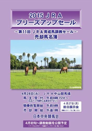 JRA日本中央競馬会はこのほど、JRAが主催する2歳育成馬調教セール・【2015 JRAブリーズアップセール(JRA Breeze Up Sale)】(開催日:4月28日(火)、開催地:JRA中山競馬場)の「売却馬名簿(79頭)」を発行しました。 JRA(Japan Racing Asso…