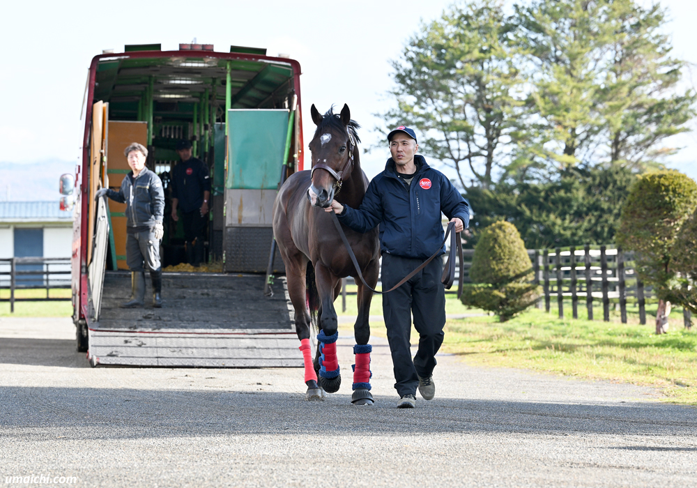 2025年11月10日(月)午前9時、2023年度のJBCスプリント(Jpn1)などダートグレード競走4勝馬【イグナイター(Igniter)】が、種牡馬として繋養される「アロースタッド(ARROW STUD)」(北海道新ひだか町静内)に到着しました。