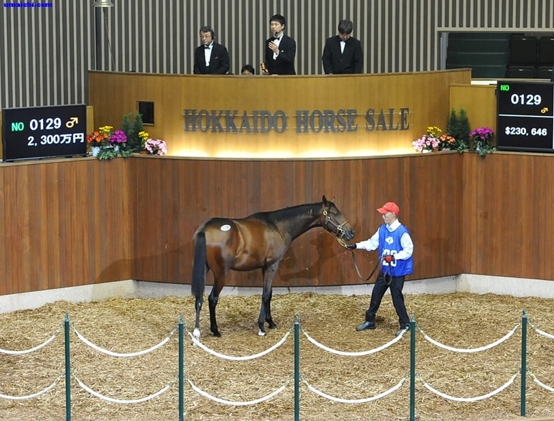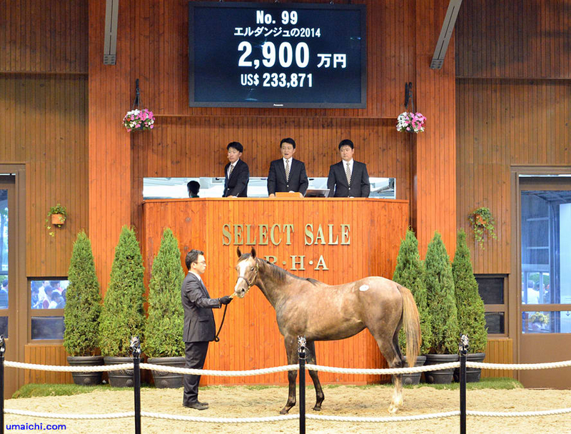 写真:HBAトレーニングセールでの落札シーン&取引後の横姿(2015/5/26撮影)